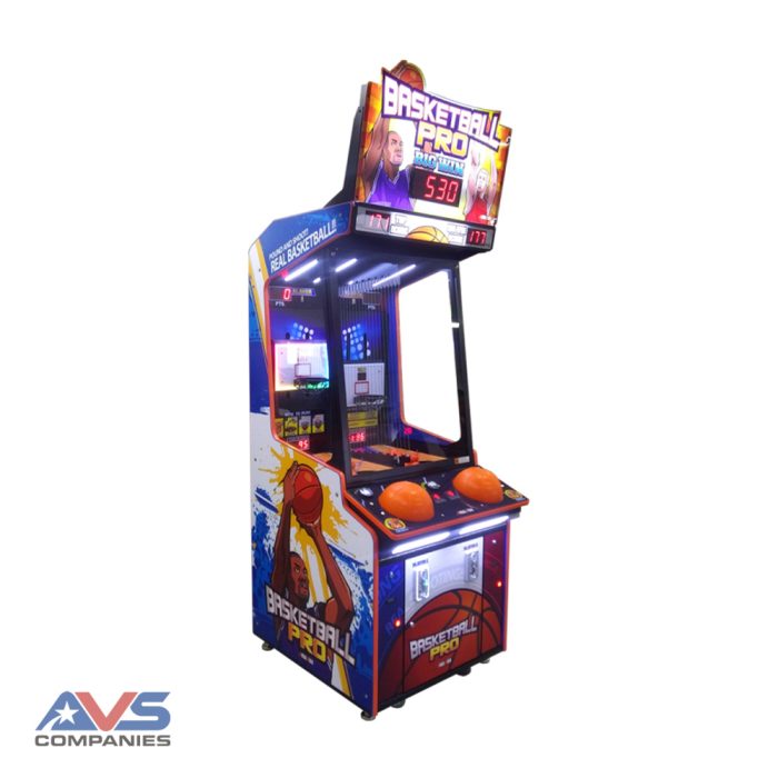 Basketball Pro incorporates a controller that is the size of an actual basketball. The air-powered, hemispherical interface allows players to control their shots. The game’s two player stations support side-by-side competition or single play. Its two backboards, equipped with hoops and game clocks, move up and down as players propel mini balls at them with each pound. Players score three points for every basket; baskets in the final 10 seconds award six points. Its compact footprint is ideal for bars and other street locations, and it will stand out in the largest of FECs.