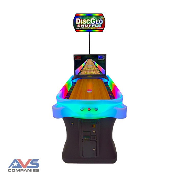 Reimagine shuffleboard with Arachnid 360 DiscGlo Shuffle! With attention grabbing LED lighting around the tub matches, the monitor and the marquee, each player gets to have their own color to easily remember who’s turn it is to play.