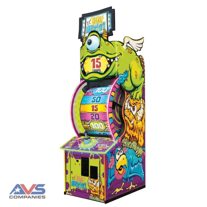 Lil’ Ticket Monsters is the little brother of the classic Ticket Monster Wheel. With three new monsters; Burp, Toot and Grunt you are sure to have a scary good time with a big reward. Maintaining a small footprint, the new Lil’ Ticket Monsters includes an eye-catching marquee that sits above Burp’s spine-chilling glowing eyeball. To give it a monstrous spin, players pull the handle up, then push down. Win a scary big pile of tickets with every spin according to where the wheel stops. We may be little, but you can — WIN BIG!