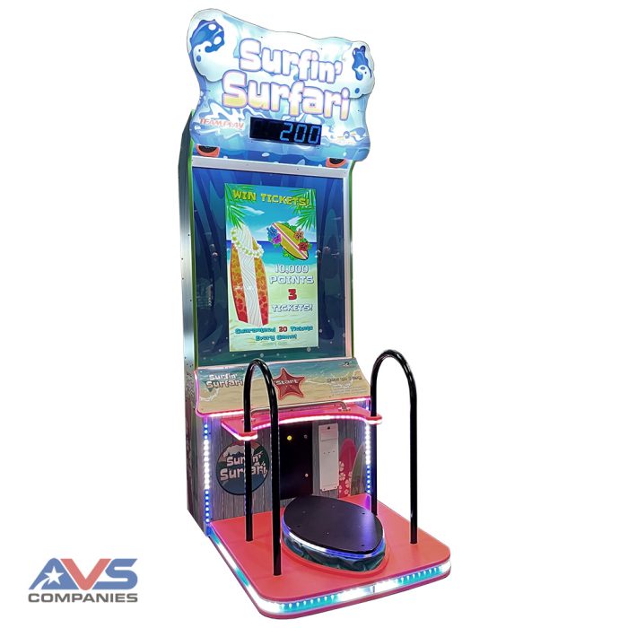 Players will look to catch a wave that is filled with ocean delights that will add to the players ticket count. Utilizing a full motion, surf board controller, players will use their body weight to move side to side and up and down in this wild surfboard ride; all the while collecting sea creatures, treasure chests and time bonus in the surf.