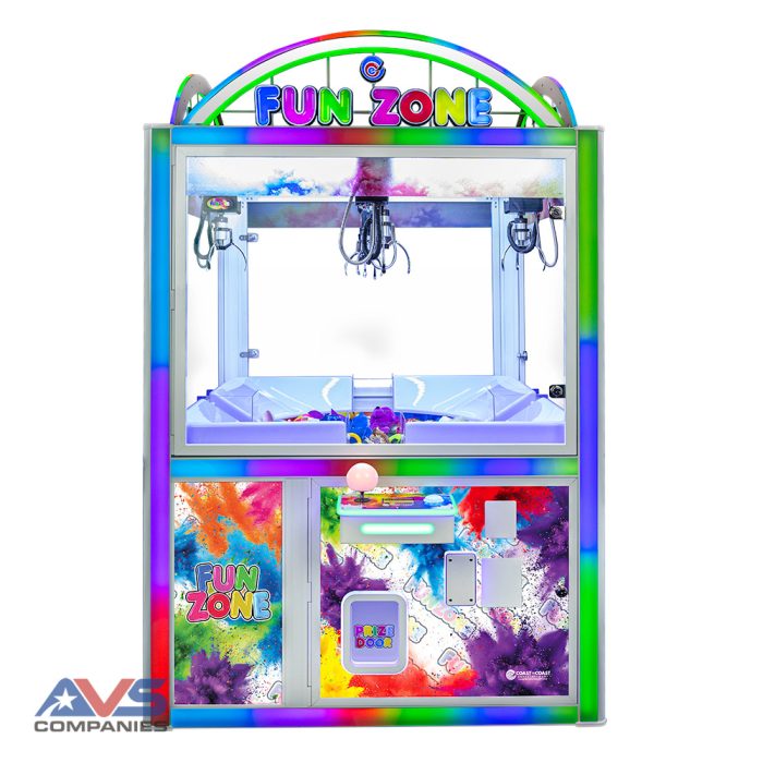 This game offers four player stations for endless fun. A rotating prize tub challenges players to drop the claw at the right moment to grab their desired prize. Additionally, a bright and stylish 3D header on each station ensures the game is visible from anywhere in your game room.Â