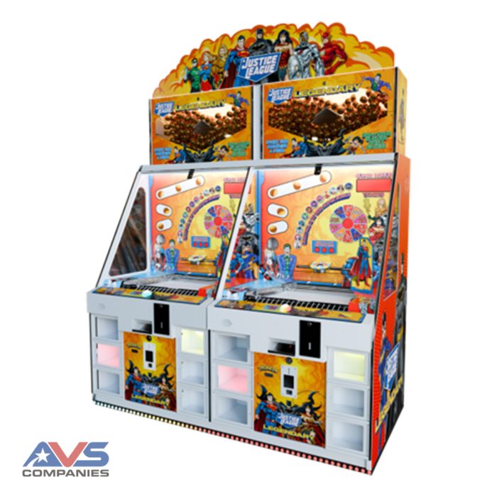 Licensed coin pusher with classic Justice League characters. This prize pusher combines a classic coin pusher with a ‘find a token’ merchandiser. Players attempt to win a golden egg by knocking it off the pusher shelf for a chance at the ultimate prize. Each egg is a winner, filled with either a small prize, or a coveted token that opens any one of the 6 prize doors.
