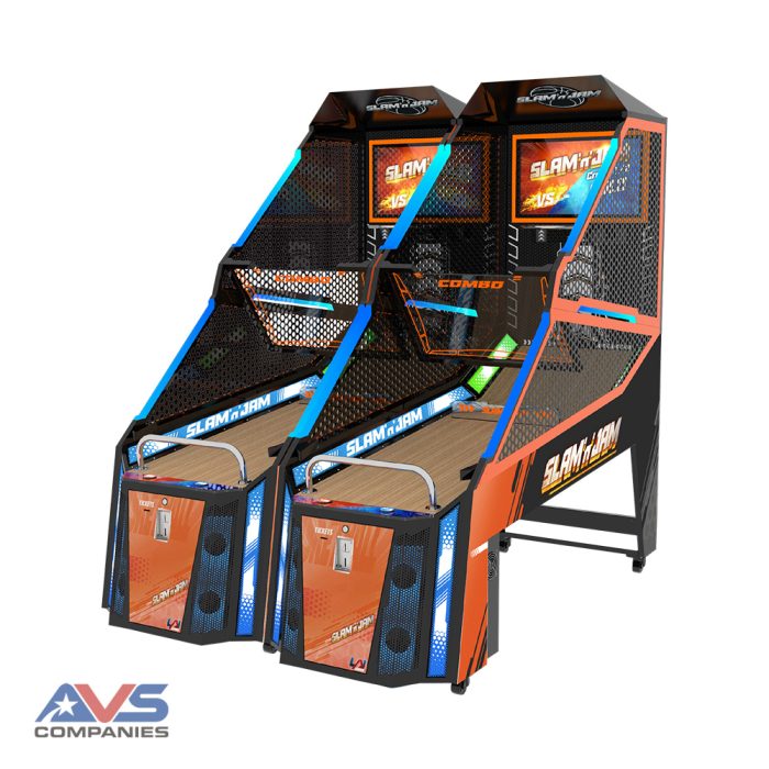 LAI Games has reinvented their classic arcade basketball hit in a brand new format. It’s street basketball like you’ve never experienced. The HD TV backboard explodes with dynamic graphics as players race the clock to beat their goal in up to 5 rounds of competitive action. Modern soundtracks, play-by-play commentary, and a stylish LED cabinet make it a crowd favorite, and with its affordable price tag, Slam ‘n’ Jam hits the sweet spot for location owners. Players can go solo, or operators can link up to 8 cabinets to play in VS mode.
