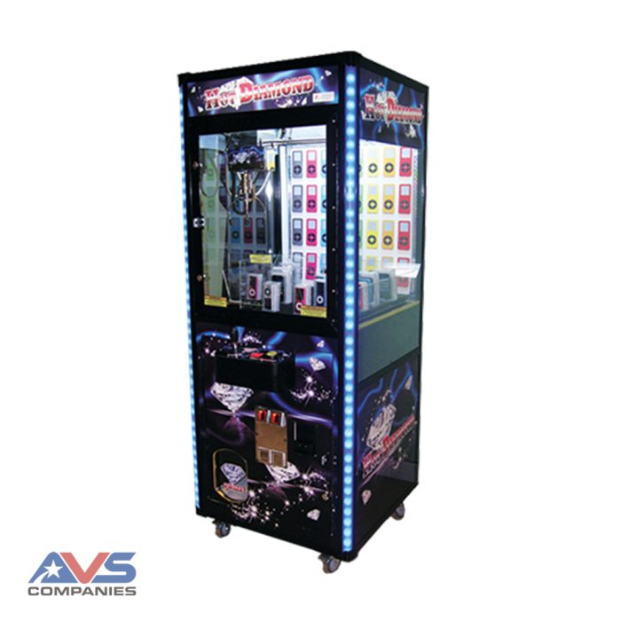 Is a Candy Crane® too small or a 45″ crane too big? Try the Hot Diamond. These cranes offer all the great features of other Smart Cranes in a compact 28″ width. Perfect for plush, jewelry, or high-value products like MP4 players.