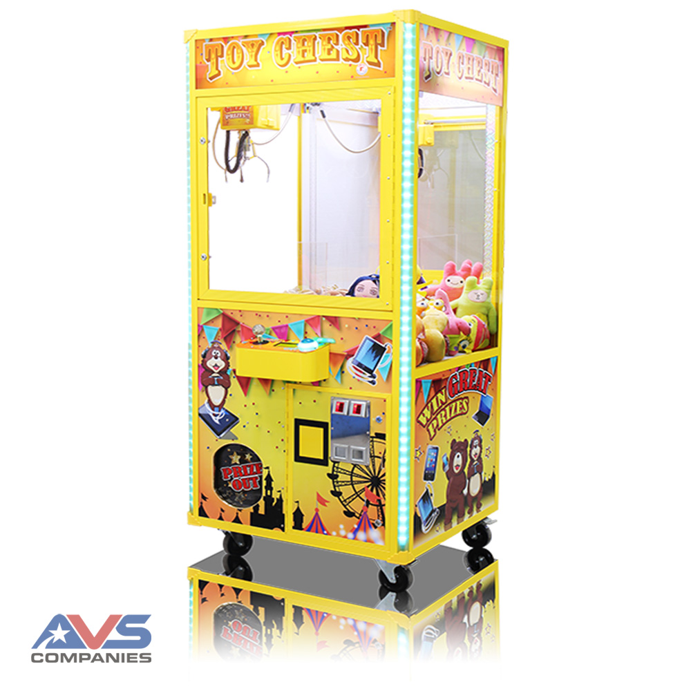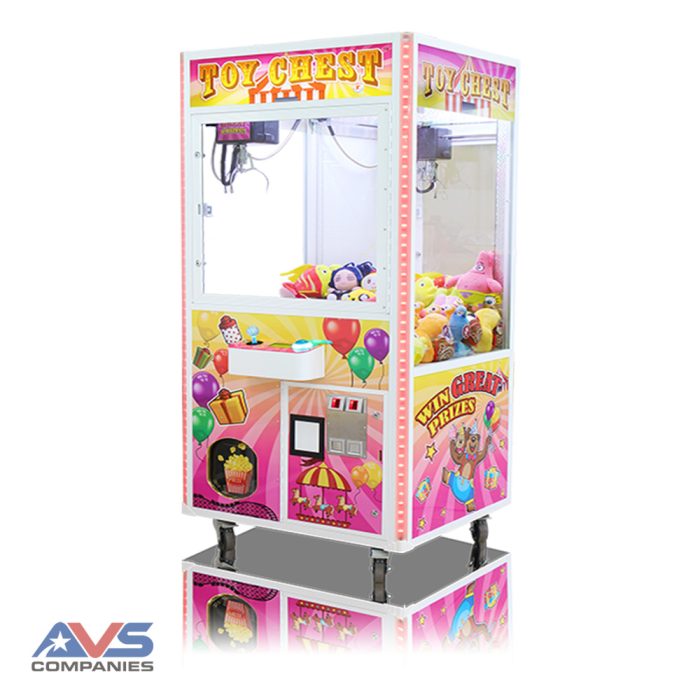 The Toy Chest ® line of cranes offers a very affordable option for those looking to get into the crane market. Customers will be drawn to the bright, attractive decal package, lighting, and sounds. The 31″ and 41″ Toy Chest ® are perfect as a Candy Crane ®, plush crane, bean bag crane, or Jewelry Crane! Both the 31″ and 41″ wide models have a 33″ depth, so they fit through standard doorways as well!