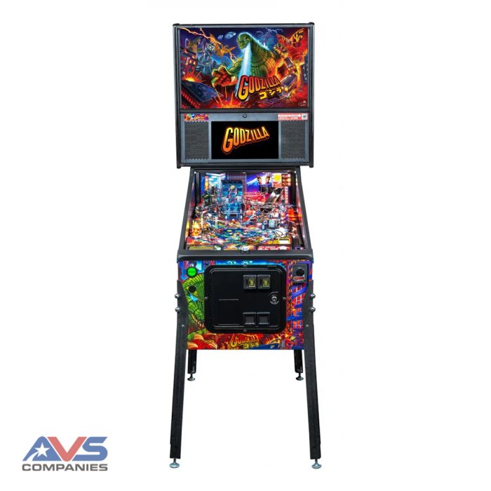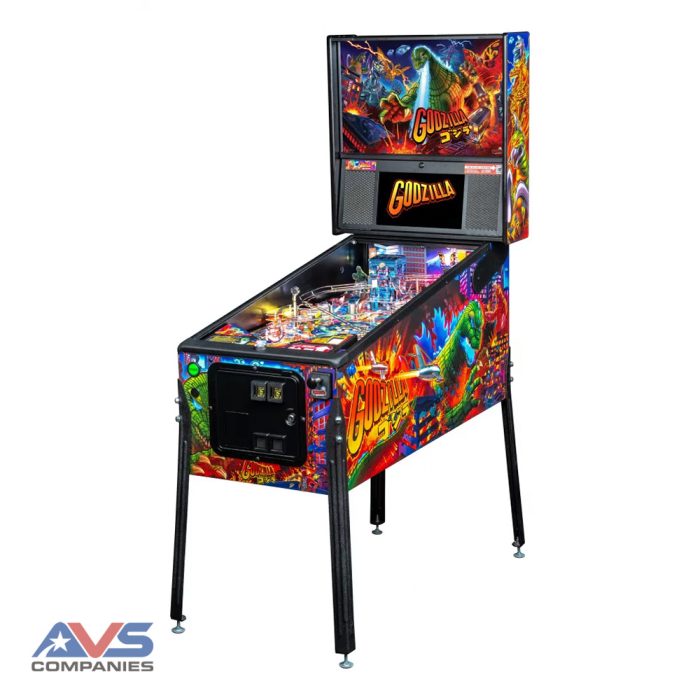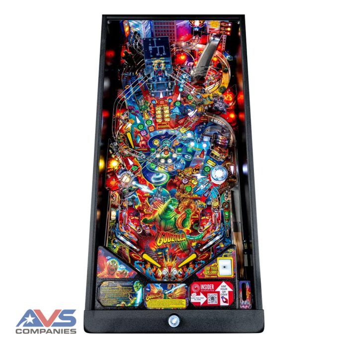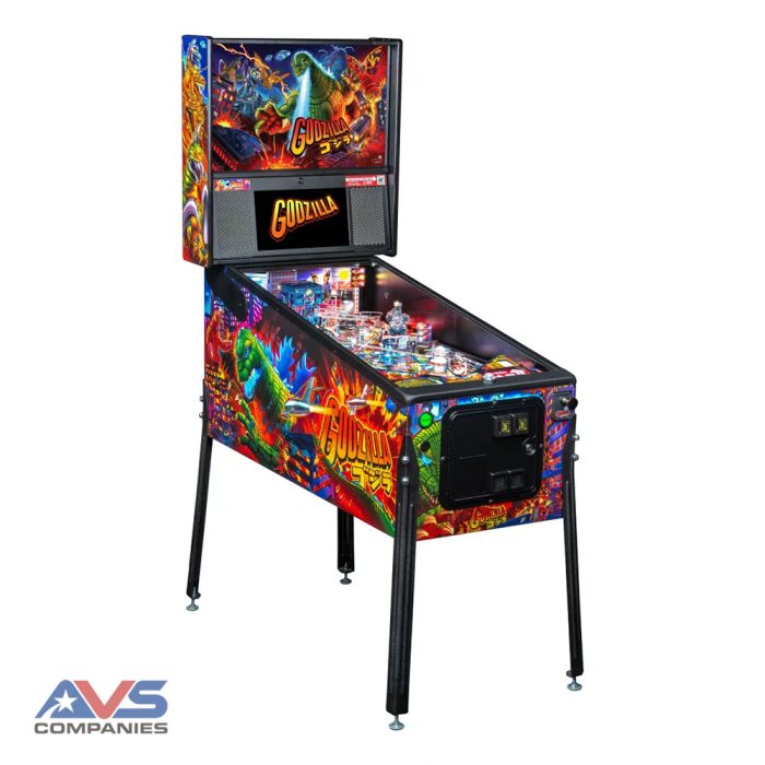 All models of Godzilla pinball machines feature an innovative “Magna Grab” magnetic newton ball, capable of catching pinballs from five different shot paths, including off the plunge. This device can also divert pinballs to set up shots from the upper left flipper. The game also includes the iconic title song “Godzilla” by Blue Oyster Cult, stunning hand-drawn artwork by Zombie Yeti, intricate wireform ramps, three spinning targets (Heat Ray, Mechagodzilla, and Monster Rampage), three flippers, three “powerline” themed stand-up targets and a UFO pop pumper. The game highlights video and audio from ten* Toho Showa Era Godzilla films to create a one-of-a-kind immersive Godzilla pinball experience.