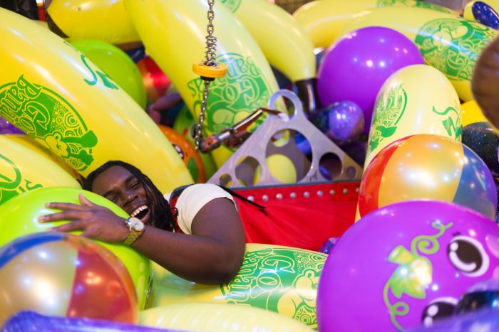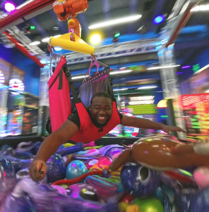 Allows riders to soar through the air above a pool of oversized prizes with the flexibility to safely accommodate riders of all ages and sizes.