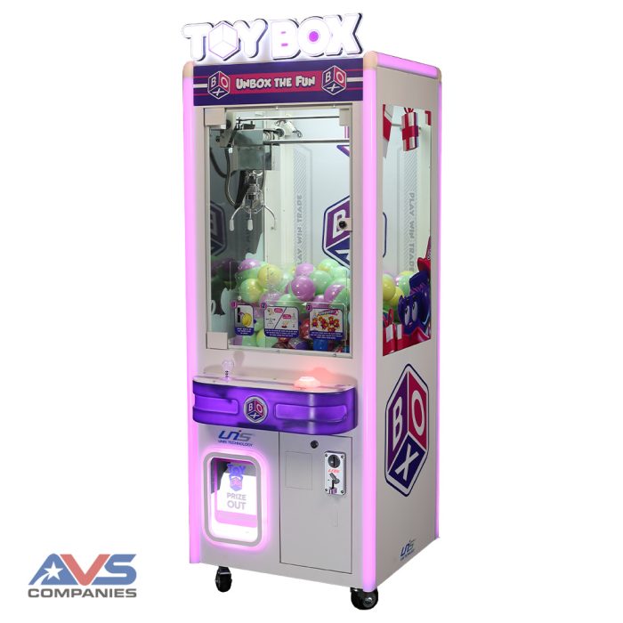 The Toy Box 24” Crane is a skill-based game, ideal for routes or locations needing a compact crane. Players use a joystick and “TAP” button to grab prizes within a time limit. Clear glass display and customizable LED lighting attract players and drive repeat traffic.