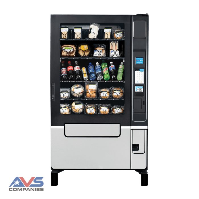 The Evoke Combo 5 Elevator features a large merchandising window and enhanced LED lighting to display products. In fact, the lumen output of the Evoke Combo models is twice the output of its predecessor and more than competitor models. With its soft elevator delivery and large delivery bin, it is capable of vending refrigerated food, snacks, and cold beverages with a variety package sizes and form factors such as boxes, cans and bottles.