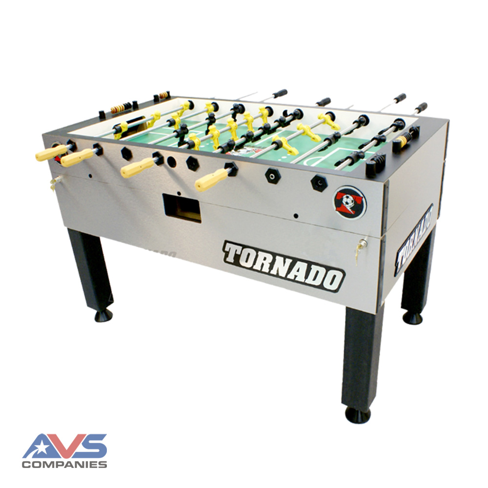 The Platinum Tour Edition combines the durability and solid 2 piece construction found on Tornado products for years, and the upgrades that Tournament Players have asked for. The Platinum Tour Edition is coin-operated and considered by many as the best foosball table in the world. It uses patented men with improved sharper corners and increased cross section allowing for better ball control and passing. This table comes standard with a 5-coin Push Chute mechanism set for either tokens or most types of currency.